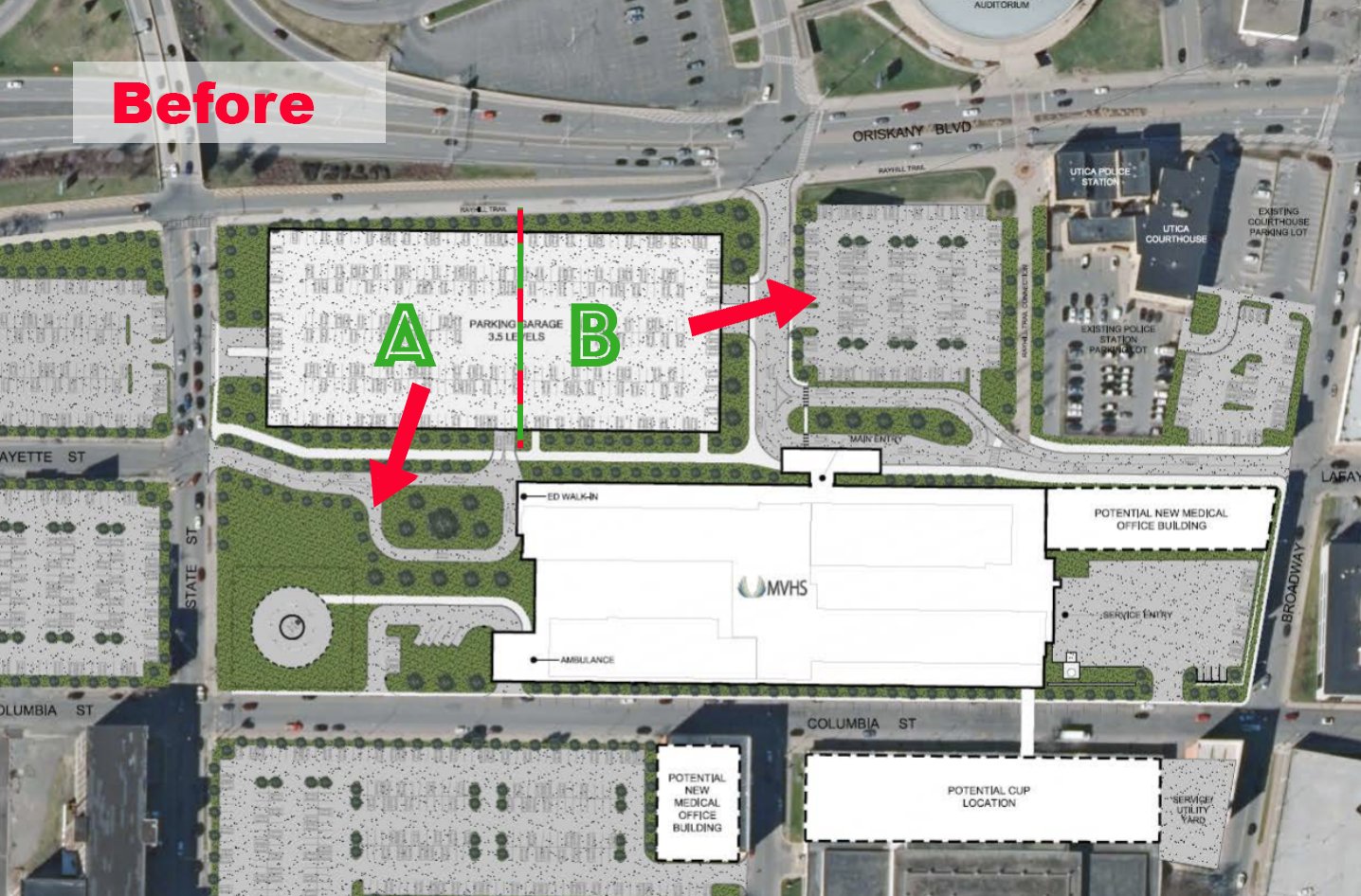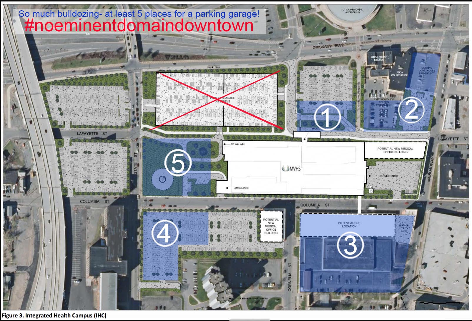 First, we say Eminent Domain by Oneida County is not required, nor that being planned by the City of Utica. Utica's Downtown Development and the Parking stories have been watched carefully. Parking requirements can be better accomplished for The Wynn Hospital and the public needs.