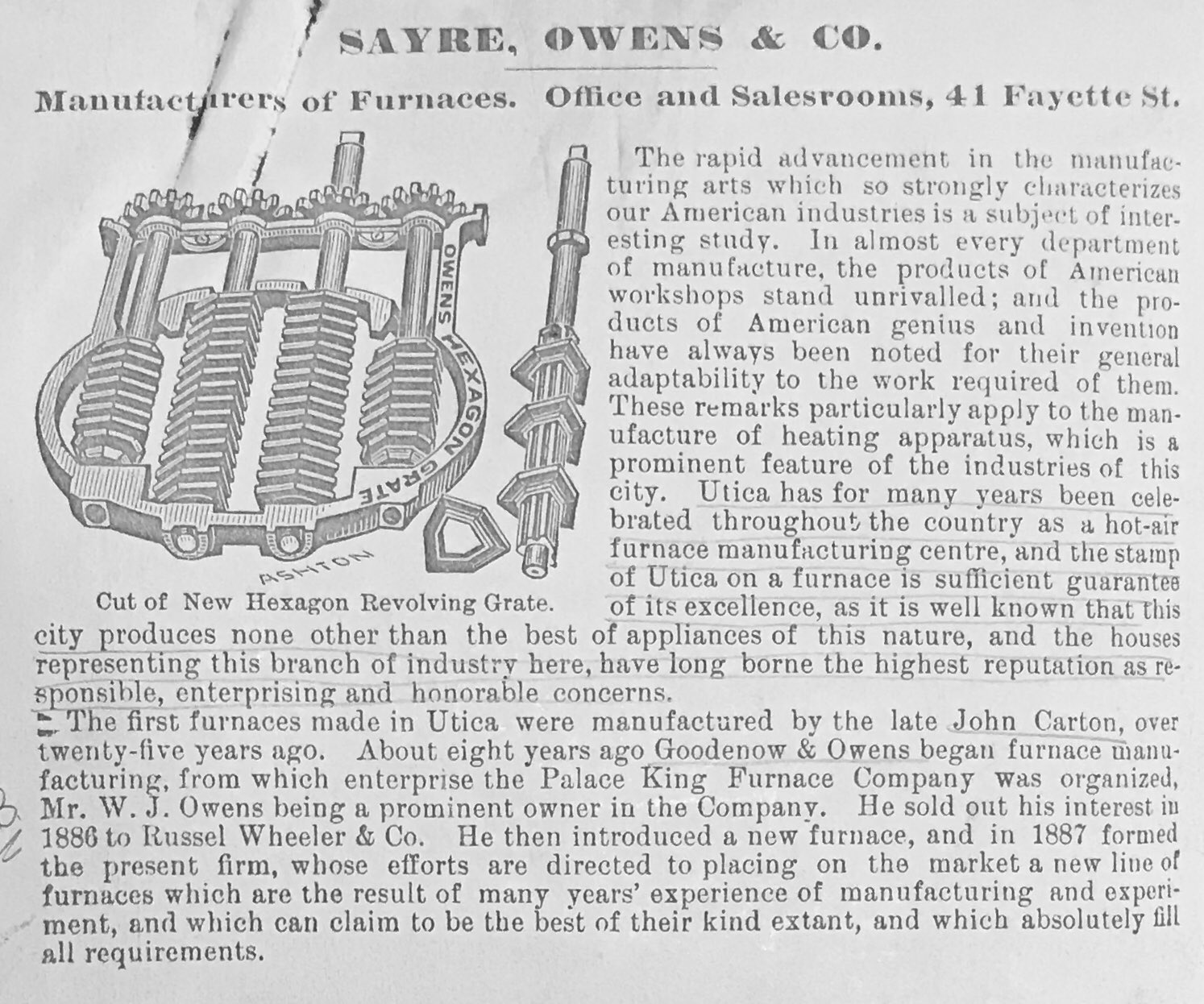 Get to know the history of Downtown Utica’s Columbia Lafayette Neighborhood and the “Sayre, Owens & Co”, a @CityofUtica furnace manufacturer https://t.co/df0b0gTYhW pic.twitter.com/OFIMSbdo4d
